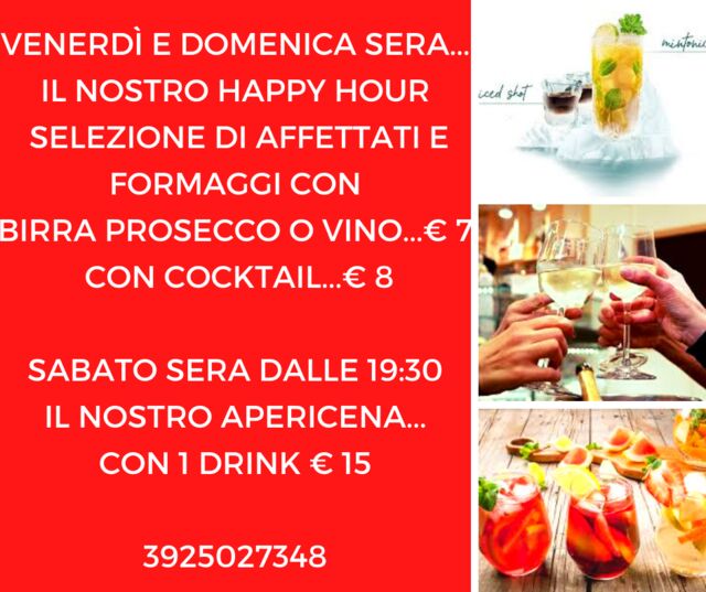 La sera nel week-end restate con noi e rilassatevi con un aperitivo o apericena!!!